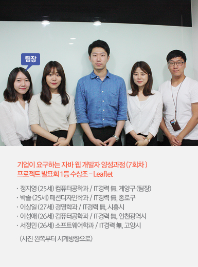 | 이상일 | 다들 6개월 동안 고생 많았고, 내가 장난도 많이 쳤잖아! 일부러 친해지려고 그랬던 거 알지? 수료하고 나서도 취업준비 잘하고, 다 잘됐으면 좋겠다! |