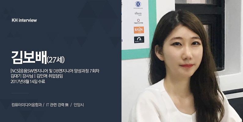 네 안녕하세요~ 컴퓨터미디어융합학과를 졸업하고, 실무경험을 더 쌓기 위해서 KH정보교육원에 오게 된 김보배입니다.
