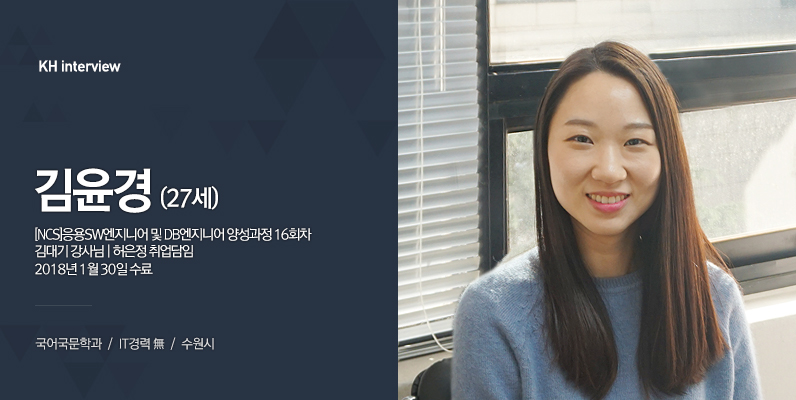 언니 후배 중에 경영학과 출신인데, 전공을 바꿔서 IT쪽으로 온 후배가 있대요. 그런데 이 분야가 오히려 더 잘 맞고, 잘 적응하고 있다고 하더라고요.(웃음) 그래서 국비로 운영되는 IT수업이 있으니 너도 관심 있으면 해보라는 식으로 말해서 제가 직접 찾고 KH에 오게 된 거예요.