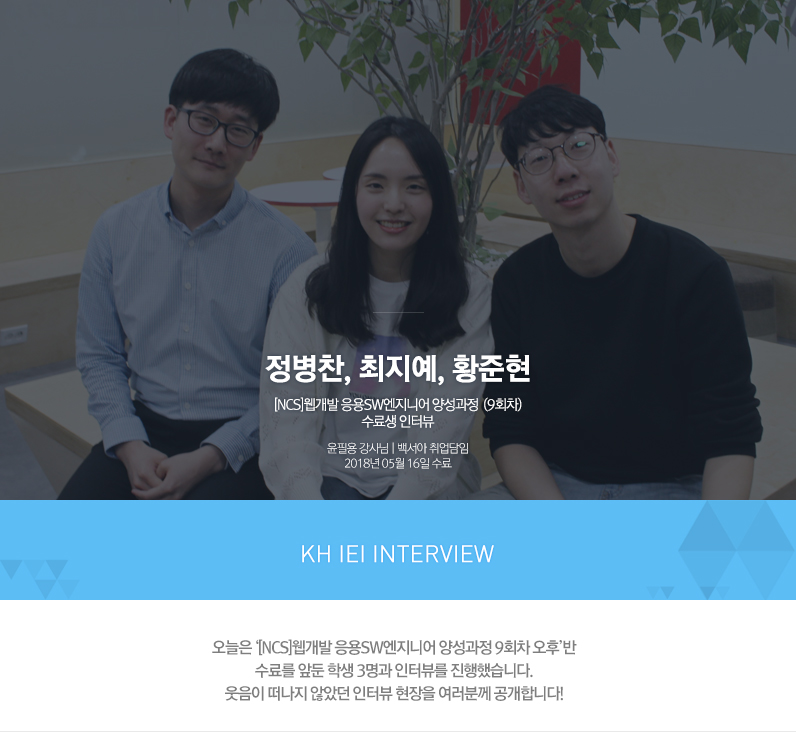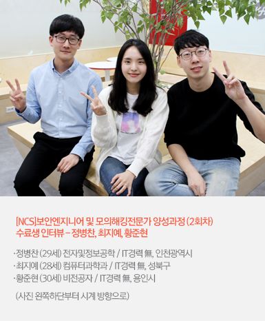 | 최지예 | 맞아요. KH정보교육원 덕분에 마음 맞는 사람들을 만나서, 이렇게 인터뷰도 같이 진행하네요. 정말 기억에 많이 남을 것 같아요. |