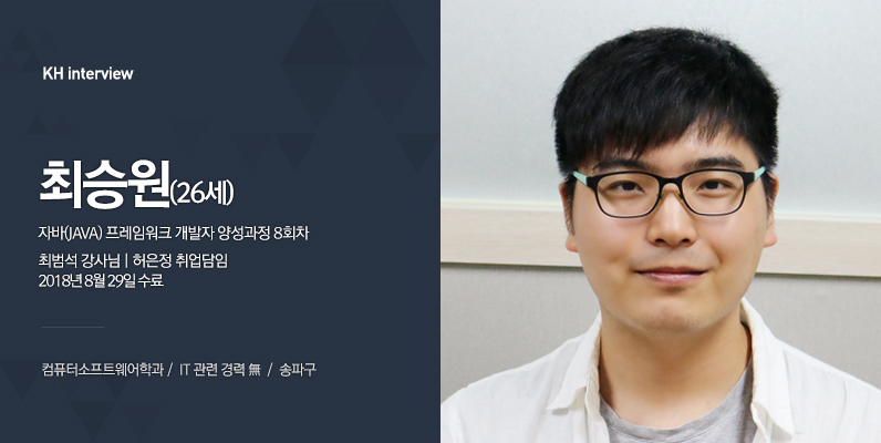 승원씨라면 웹, 어플리케이션 이 두 가지를 모두 개발할 수 있는 개발자가 되실 거 같아요!^^ 승원씨가 희망하는 개발자가 되기 위해서 저희 KH정보교육원이 열심히 응원하겠습니다.