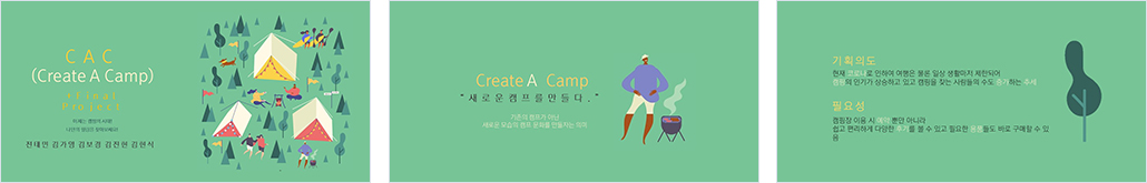 현재 코로나로 인하여 여행 및 일상생활이 제한되어 캠핑에 인기가 상승하고있는데 캠핑장 이용 시 예약 뿐만아니라 후기를통한 선택의 다양성을 제공하고 필요한 용품을 편리하게 사용할 수 있게 하는 서비스 제공 예정 |
