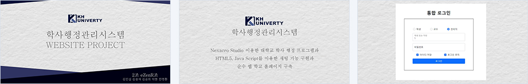 보편적 대학 학사행정 및 학생 계정별 웹하드 기능을 처리할 수 있는 대학 홈페이지 및 내부 관리 시스템을 넥사크로 및 스프링으로 개발 |