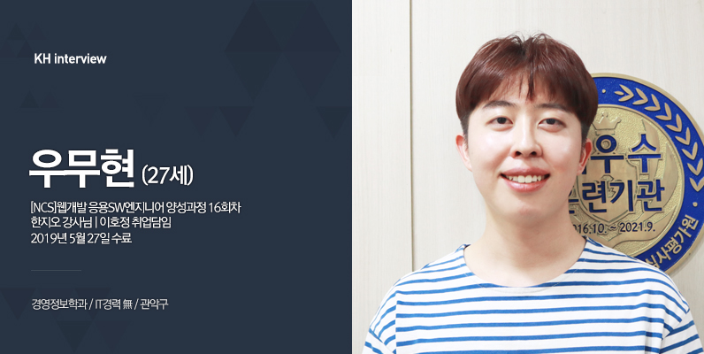 채용연계형 인턴에 지원을 한 적이 있는데, 준비하면서 제 실력을 점검 해보고 실력을 향상해야겠다는 필요를 느끼게 돼서 학원을 알아보고 있었어요. 그러던 중 같은 과 친구의 추천으로 KH에 오게 됐습니다.