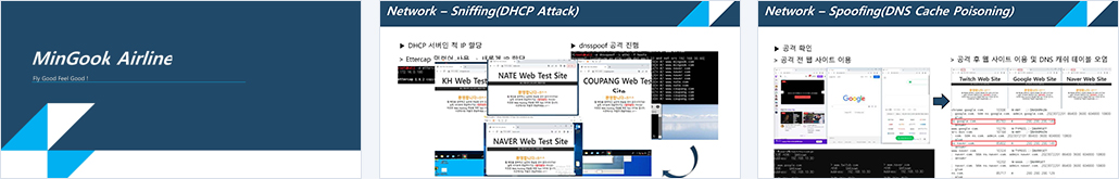 매해가 지날수록 국내 여행객의 수는 급증하면서 그로 인해 이용하는 고객의 개인정보 및 항공편 예약 및 운영, 승객 정보 등 항공업무 등 많은 데이터를 보유하고 있는 민국항공에 개인정보가 유출되는 사건이 발생했습니다. 따라서 모의해킹을 통해 이와 같은 보안 사고를 예방하기 위해서 취약점 진단 및 보안 인프라망을 구축했습니다. |