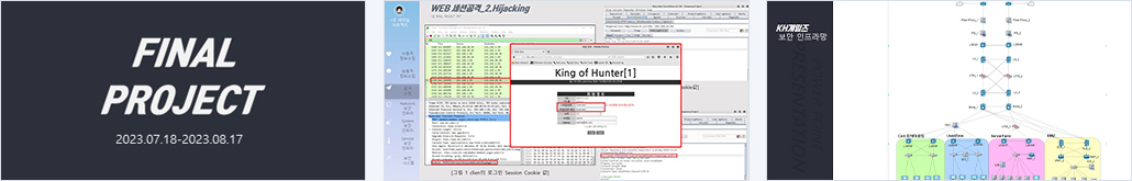 (주) KH 게임즈는 King of Hunter라는 FPS 게임 서비스를 제공하는 회사로써, 리그 오브 XXX와 같은 국내 인기 게임들의 인기가 사그라지면서 자연스럽게 새로운 게임인 King of Hunter를 플레이하는 이용자들이 많아지고 있다. KH 게임즈는 해커로부터 심각한 공격을 받아 유저들의 가입정보가 유출되어 사용자들의 개인 정보 유출 피해가 심각하게 발생하였으며, 이로 인해 King of Hunter의 내부 소스가 직접적으로 유출되었고 KH 게임즈는 실시간으로 피해를 입었으며, 이미지 손실로 인한 고객층 이탈 등의 막대한 타격을 입게 되었다. 이러한 상황으로 인해 정보보안 미흡으로 인한 업무상의 손실과 고객들의 신뢰도를 되찾기 위해 CERT 침해사고 대응팀을 구성하여 안정적인 서비스를 제공할 수 있는 인프라를 구축하고자 한다. 해킹 피해를 받은 경험을 바탕으로 모의 해킹을 진행하여 취약점을 분석하고, 이를 기반으로 방화벽 및 보안 솔루션 장비들을 도입하여 보다 보안을 강화한 인프라를 재구축하고, 장비의 이중화를 통해 KH 게임즈 인프라의 안정성과 가용성을 높여 안전한 서비스를 제공하여 이를 통해 고객층을 다시 모을 수 있도록 한다. |