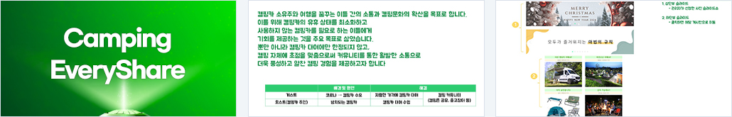 개요 코로나가 유행하면서 캠핑카의 구매수요가 늘어났습니다. 하지만 휴일에 항상 캠핑카를 가지고 여행을 가지는 않기 때문에 사용할 수 있지만 구매자의 여건이 안 맞아서 방치되는 캠핑카의 수가 많이 있습니다. 이런 유휴상태의 캠핑카로 캠핑카 구매자들에게는 부가수입을 얻을 수 있게 해주고, 캠핑카를 타고 여행을 떠나고 싶지만 구매를 하지 않은 사람들에게는 저렴한 가격에 캠핑카를 타고 떠나는 여행의 즐거움을 느낄 수 있는 기회를 제공합니다. 그 외에도 캠핑과 관련된 커뮤니티(캠핑존 공유, 캠핑용품 중고마켓 등등)을 구성했습니다.