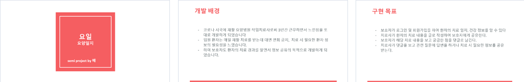 코로나 시국에 재활요양병원 작업치료사로써 근무하면서 입원환자가 매일 치료를 받는데 보호자가 환자 치료를 경과를 인지하면서 치료에 도움이 될 정보의 필요성을 느끼게 되어 개발하게 되었습니다. |