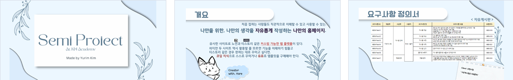 최소한의 절차만으로 누구나 가볍게 자신의 감상과 생각을 남길 수 있고 자신이 생각하기에 재미있었던 순간이나 컨텐츠를 올려 사람들과 공유하는 홈페이지를 만든다. |
