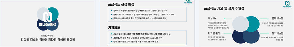 코로나 시대에 비대면 서비스 비중이 늘어나서 비대면 서비스 이용해야 하는데 사내 그룹웨어 마련이 안된 기업들을 위해서 웹사이트화하여 무료로 재택근무 시에 활용할 수 있는 그룹웨어를 고안해봤다. |